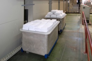The Goodwill laundry is a state-of-the-art, energy efficient and environmentally friendly plant. The facility was built with the latest technologies and innovations, and its advanced automation helps streamline production and provide a major competitive advantage in quality, efficiency and price.